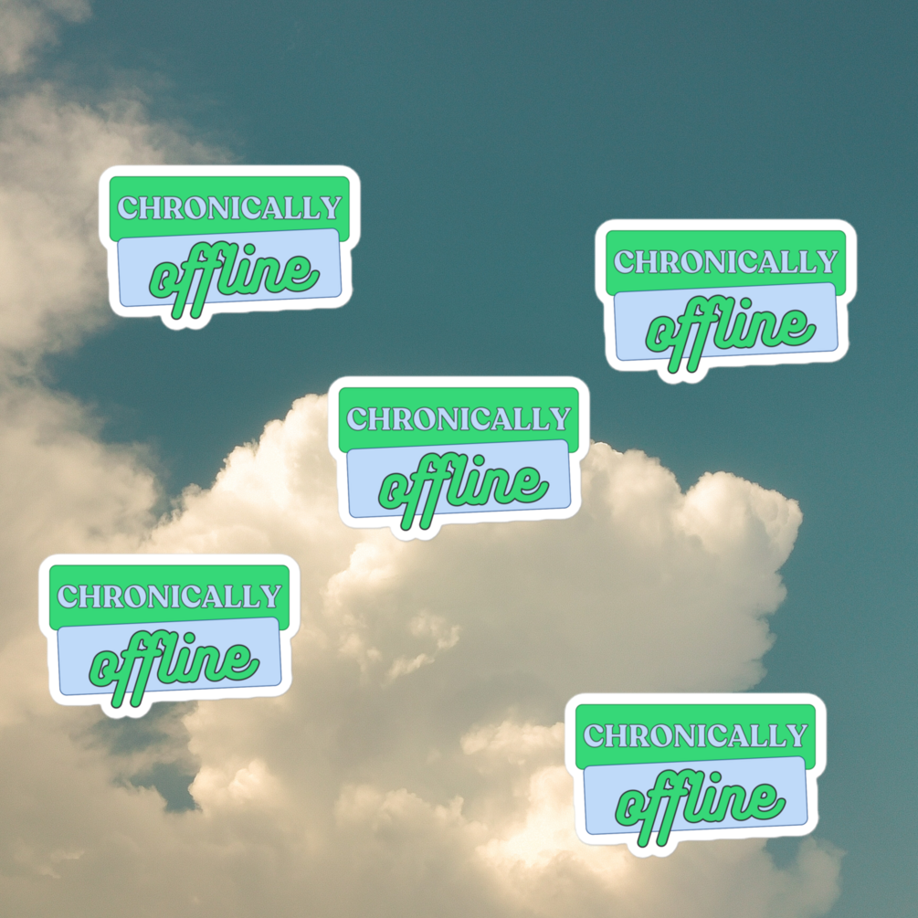 Chronically Offline Sticker$4.50$4.50https://schema.org/InStockusdrecessrecessBuy thisAdd to wishlist New wishlistShareShare on XShare on Facebook Copy linkCopy product URL